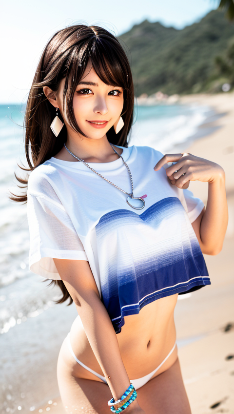 AI美少女 | 海邊 | beach | Seaside | T-Shirt | シーサイド | Tシャツ | 시사이드 | 티셔츠 @愛美圖 AI Pretty